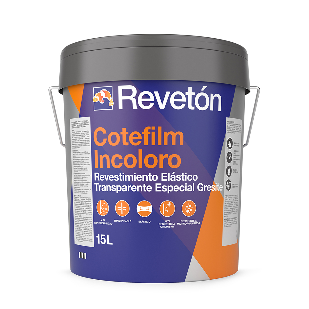 Revestimiento acrílico transparente de alta protección y durabilidad para soportes minerales. Acabado filmógeno brillante.